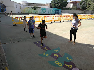 La última actividad que se ha desarrollado ha sido el taller de "aprendemos jugando" desde el que se ha pintado y decorado el suelo de los patios del centro y se han trabajado los juegos para el recreo.